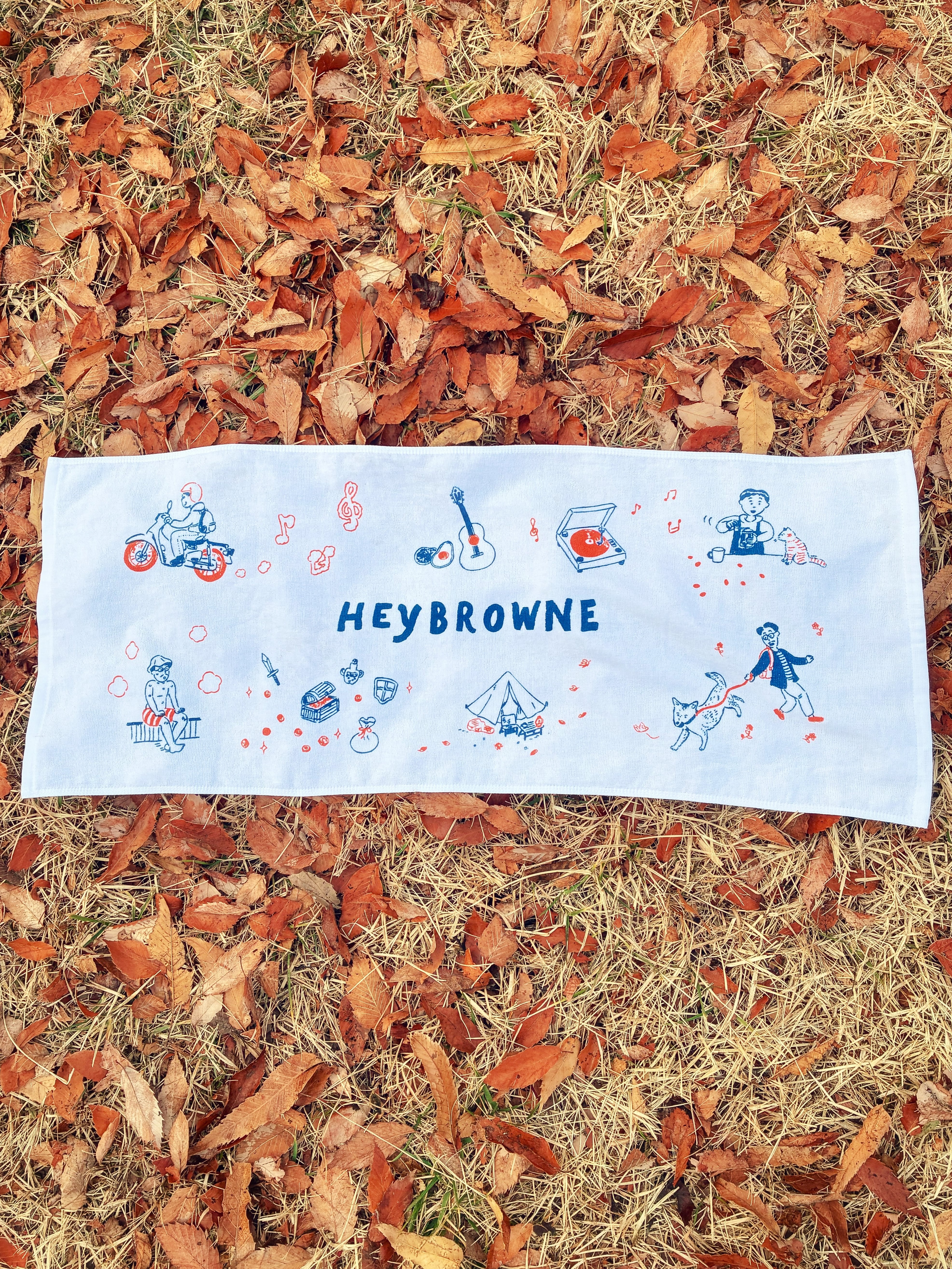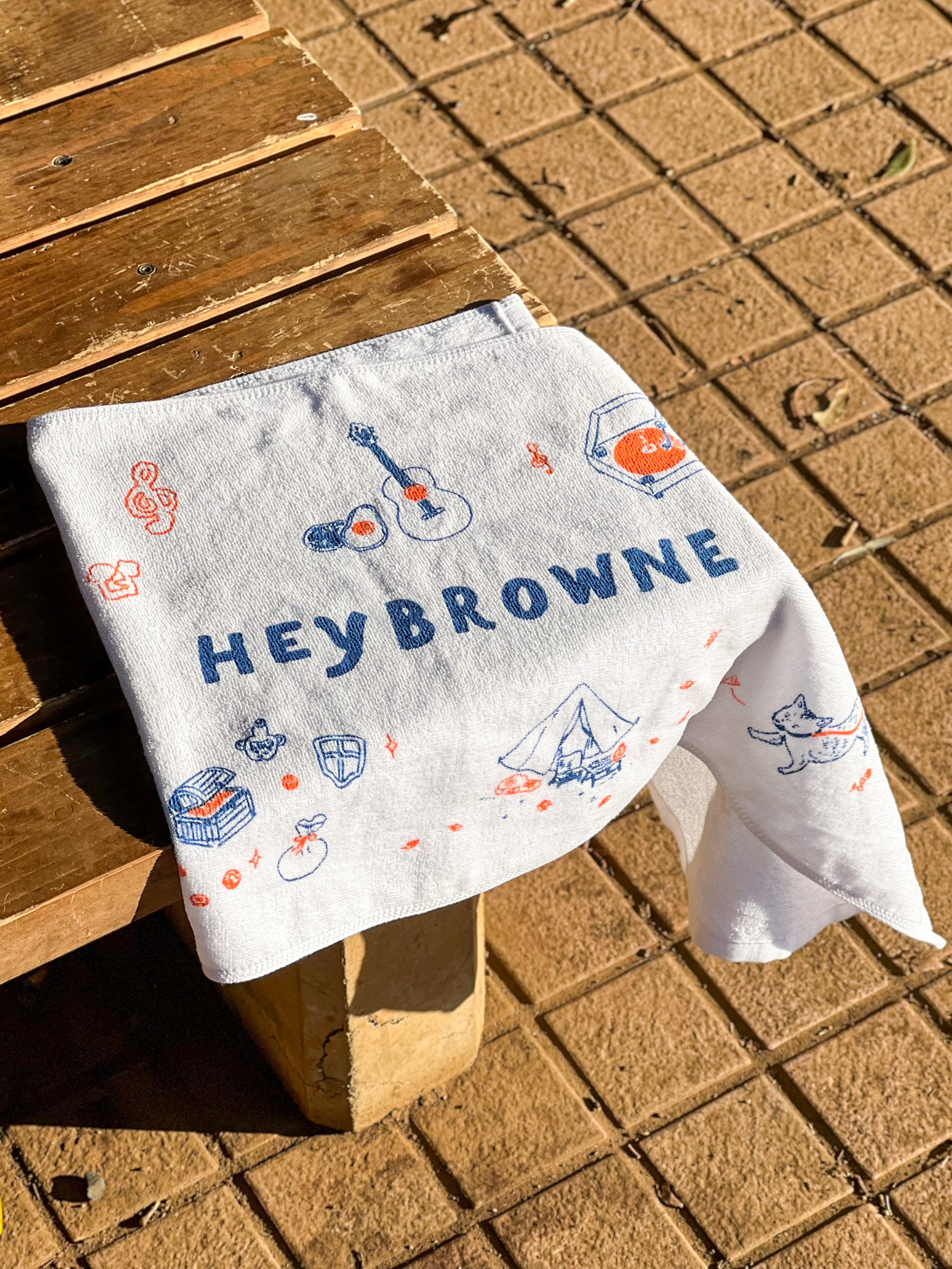 イラストレーター本田亮さんによる描き下ろし、オリジナルイラスト&ロゴ入りフェイスタオル。ヘイブラウンの日常や好きなものをモチーフにしたデザイン。