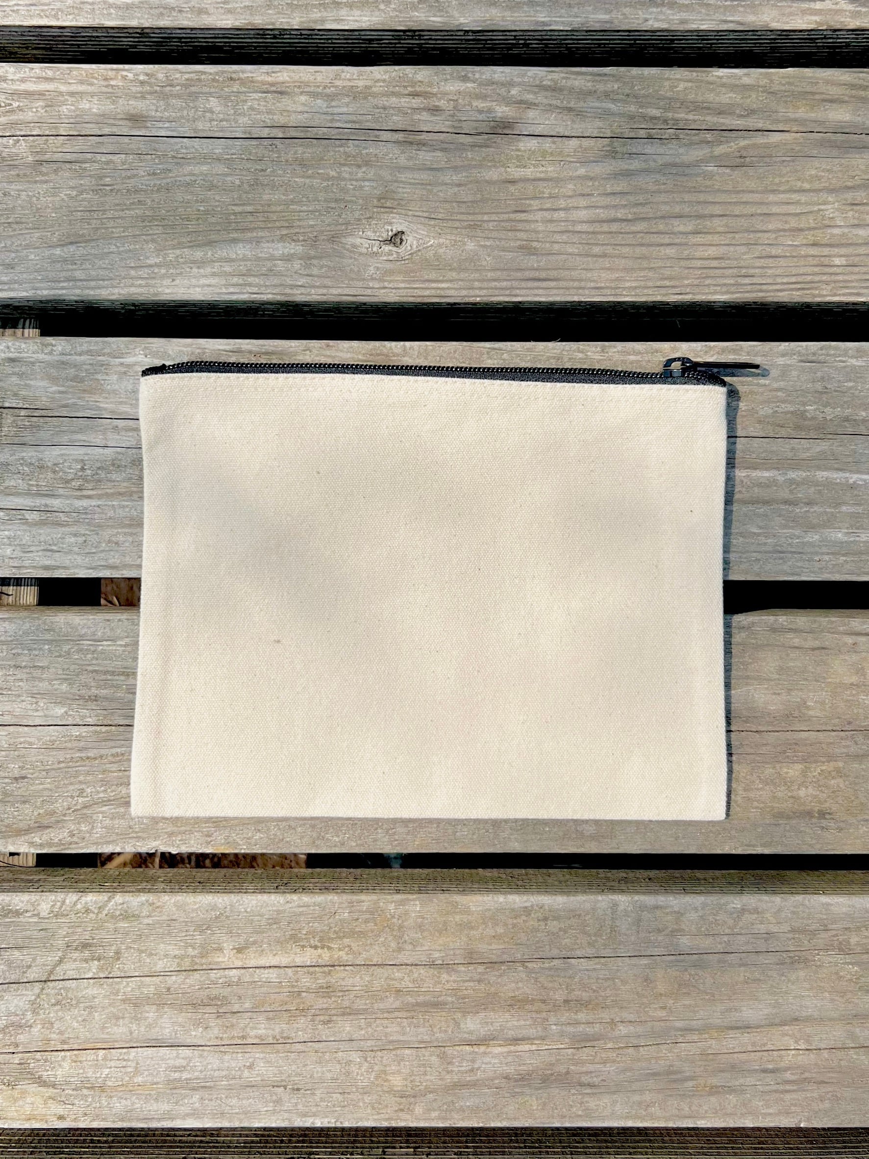 コットン100%のキャンバス生地を使用した12オンスの正方形マチなしポーチ。