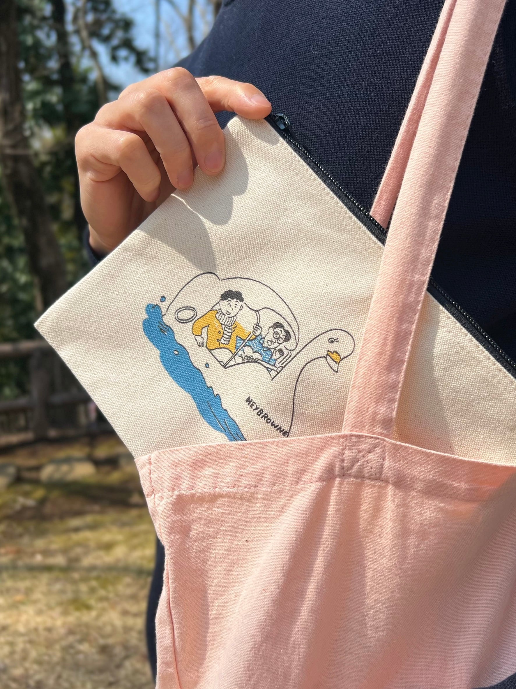 イラストレーター本田亮さんによる描き下ろし、オリジナルイラストのポーチ。